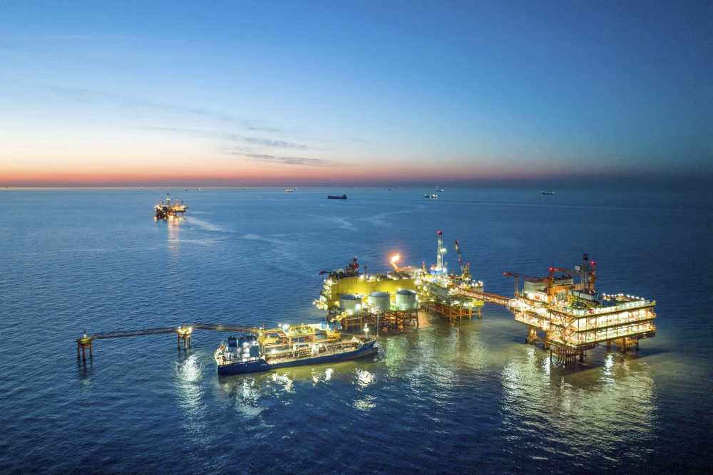 這是2024年1月25日拍攝的埕北油田全景(無人機(jī)照片)。當(dāng)日,位于渤海灣西南部的埕北油田油氣處理與岸電設(shè)備共建平臺——CEPC(中心平臺)正式投產(chǎn),該平臺可使油田接入來自陸地的綠色電力,減少海上“自發(fā)電”帶來的天然氣和原油消耗。新華社發(fā)(杜鵬輝攝)