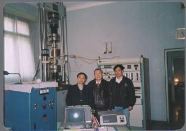 20世紀(jì)80年代在華東石油學(xué)院試驗(yàn)室與研究生進(jìn)行海洋鋼結(jié)構(gòu)疲勞試驗(yàn)(中為方華燦)。新華社發(fā)
