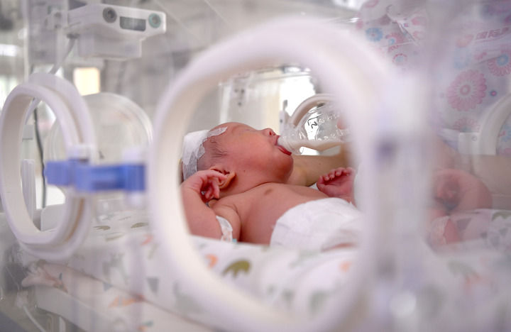 2024年6月1日,在西安國際醫(yī)學(xué)中心醫(yī)院新生兒科病房,護士為新生兒喂奶。 新華社記者 劉瀟 攝