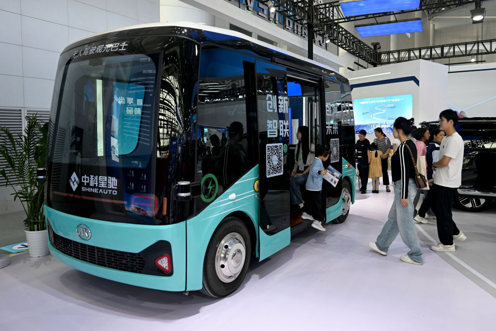 9月21日,在2024世界制造業(yè)大會(huì)上,人們參觀(guān)體驗(yàn)一款無(wú)人駕駛觀(guān)光巴士。新華社記者 黃博涵 攝