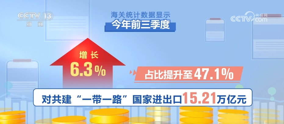 海關統(tǒng)計數(shù)據(jù)顯示,今年前三季度,我國市場多元化穩(wěn)步推進,與全球160多個國家和地區(qū)貿(mào)易實現(xiàn)增長。對共建“一帶一路”國家進出口15.21萬億元,同比增長6.3%,占比提升至47.1%。對RCEP其他成員國進出口9.63萬億元,增長4.5%,其中對東盟進出口5.09萬億元,增長9.4%。同期,對歐盟、美國分別進出口4.18萬億和3.59萬億元,分別增長0.9%、4.2%。