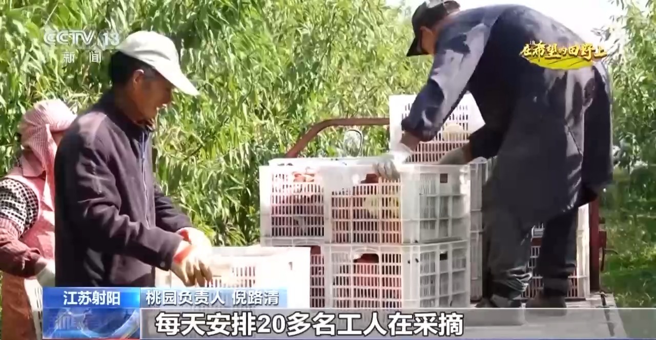 在鹽城市射陽(yáng)縣新坍鎮(zhèn)的一處桃園種植了4萬(wàn)多株桃樹(shù)。果農(nóng)們忙著摘桃、分揀、裝筐,預(yù)計(jì)整個(gè)采摘銷(xiāo)售期能持續(xù)一個(gè)月左右。