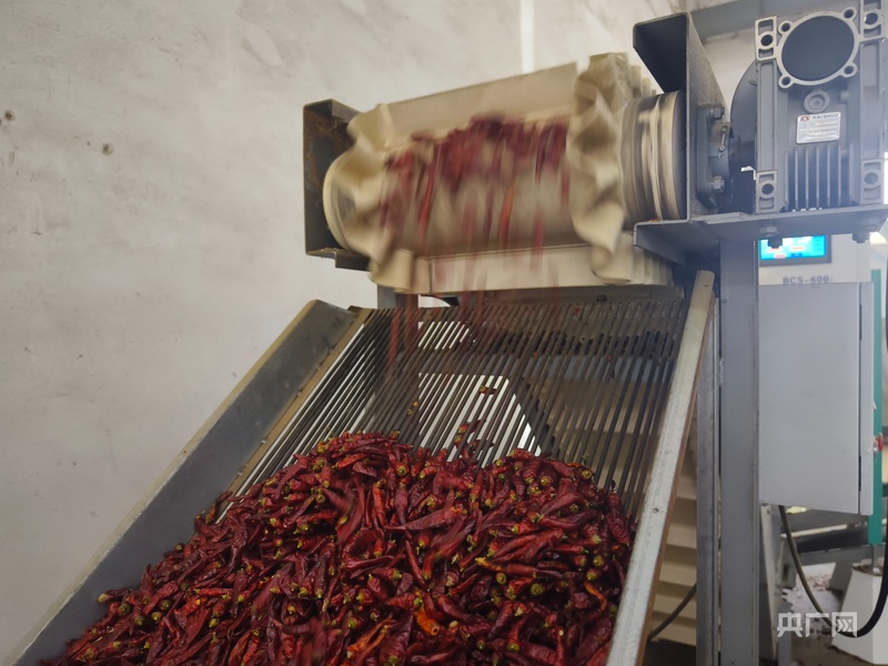 生產車間內辣椒正在進行機械化處理(央廣網(wǎng)記者 欒小琳 攝)