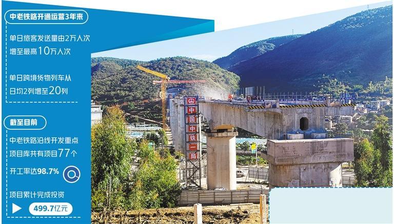 3年來,云南省搶抓中老鐵路機(jī)遇,以通道能力提升、物流樞紐建設(shè)、沿線產(chǎn)業(yè)開發(fā)和經(jīng)營主體培育為重點(diǎn),切實(shí)打造一條開放發(fā)展的黃金道路。截至目前,中老鐵路沿線開發(fā)重點(diǎn)項(xiàng)目庫共有項(xiàng)目77個(gè),開工率達(dá)98.7%,項(xiàng)目累計(jì)完成投資499.7億元,投資完成率超66.7%,對促進(jìn)中老鐵路沿線開發(fā)發(fā)揮了重要作用。