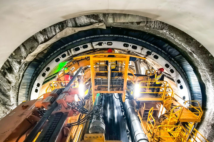 這是2025年1月5日拍攝的引江補漢工程首臺雙護盾硬巖掘進機“江漢平安號”掘進施工現(xiàn)場。新華社記者 肖藝九 攝