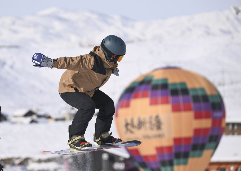 1月25日,游客在將軍山國際滑雪度假區(qū)乘坐熱氣球觀光。