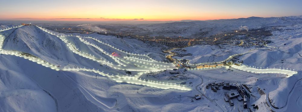 黃昏時(shí)分的將軍山國際滑雪度假區(qū)(1月24日攝,無人機(jī)照片)。