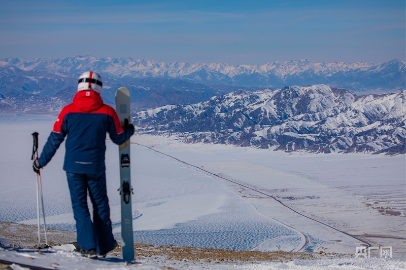 滑雪愛好者在滑雪場(chǎng)欣賞冬日的賽里木湖 (央廣網(wǎng)記者丁安 攝)
