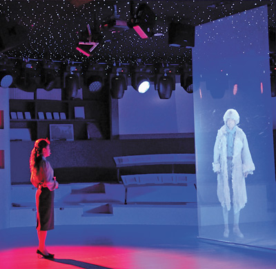 《百日戰(zhàn)斗檔案 不朽民族氣節(jié)》授課教師與楊靖宇A(yù)I形象隔空對話。孫曉亮攝