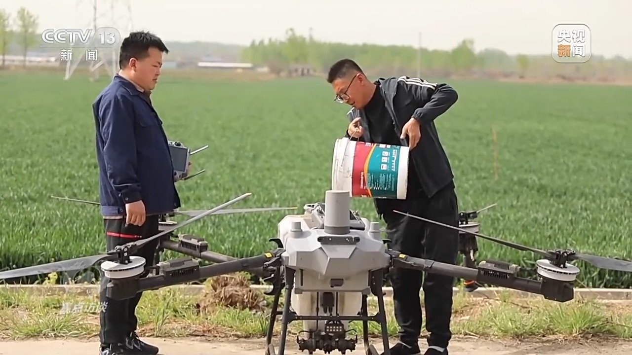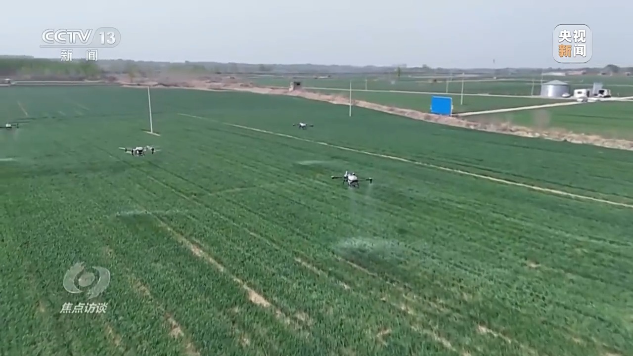 5月17日,40攝氏度高溫天氣到來的前兩天,當?shù)囟鄠€小麥主產(chǎn)縣,一臺臺植保無人機低空掠過綠浪翻滾的麥穗,噴灑出細密的“藥雨、肥雨”,為久旱的麥田送來了及時雨。