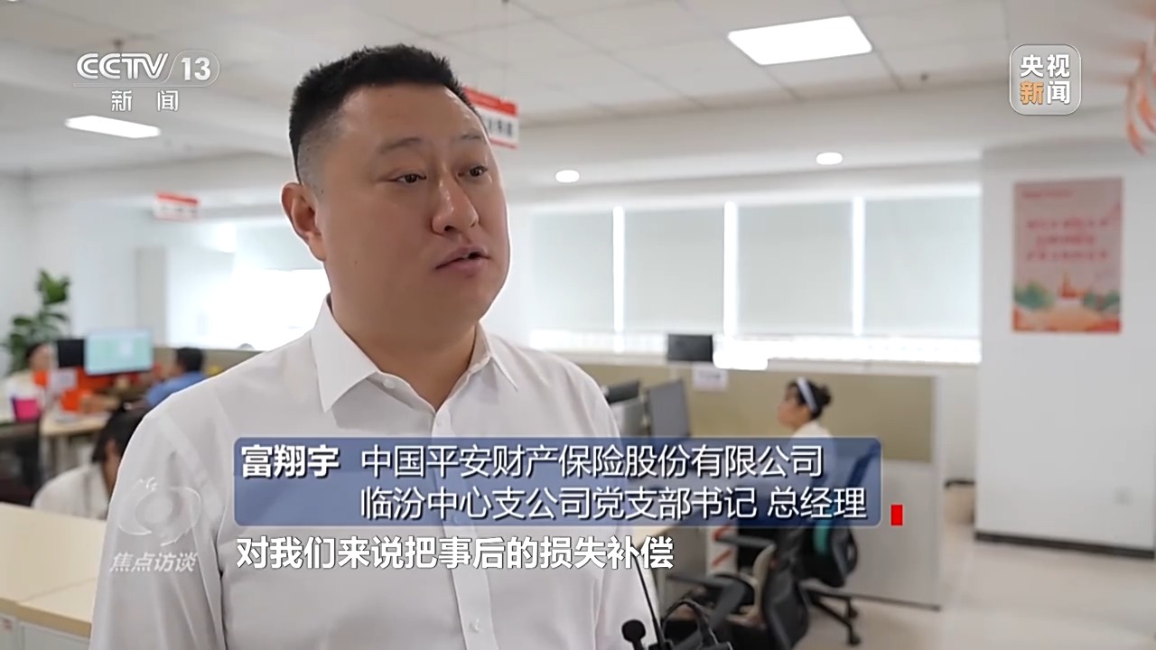 中國平安財產(chǎn)保險股份有限公司臨汾中心支公司黨支部書記、總經(jīng)理 富翔宇:老百姓的產(chǎn)量有保證了,對我們來說把事后的損失補償調整到事中的風險減量工作,對我們的整體成本控制也是有很大幫助的。