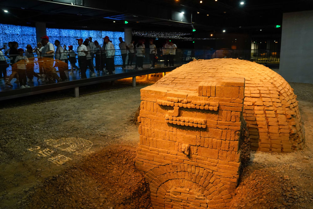 墓門照墻上青龍、白虎、朱雀、玄武等中國傳統(tǒng)神獸紋樣至今清晰可見,上海游客陳美琳一邊專注地欣賞,一邊感慨道:“仿佛能觸摸到歷史脈搏,感受遙遠(yuǎn)時(shí)代的生活氣息?!?/p>