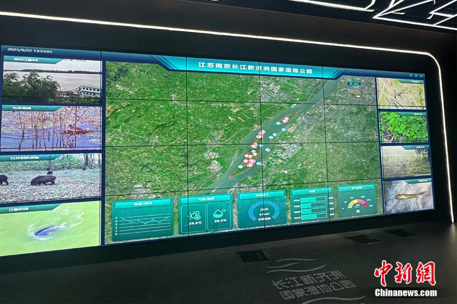 南京長江新濟洲國家濕地公園內的智慧大屏。高萌 攝