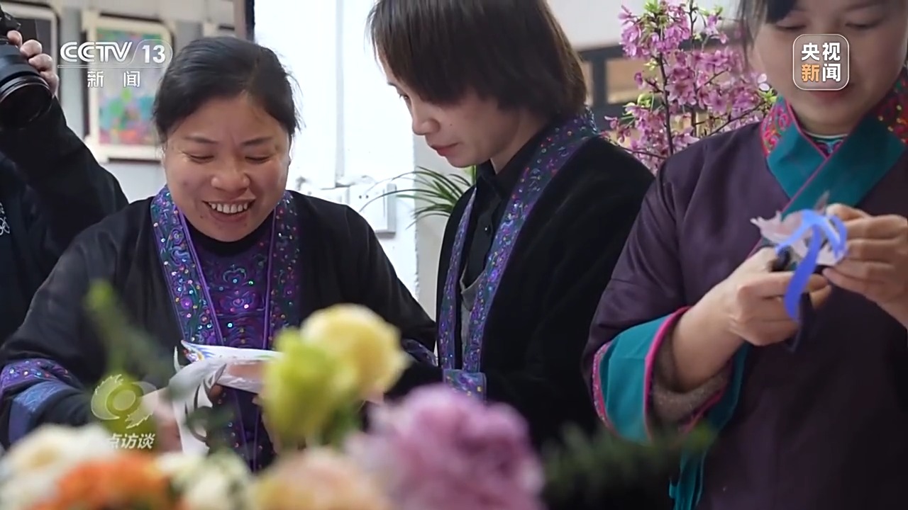 陳美美:我還記得我女兒一直問我,媽媽天上是什么?我說是飛機(jī)。你努力讀書,我以后要跟著你一起去坐飛機(jī)。我沒想到我女兒還沒長大,我就因為畫畫坐飛機(jī)去了北京。真的畫畫改變了我,也改變了我們家鄉(xiāng)。