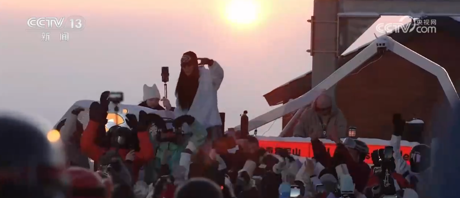 每當(dāng)傍晚,山頂上還有很多雪友喜愛的“夕陽(yáng)派對(duì)”,在太陽(yáng)快落山的時(shí)候,穿著五顏六色滑雪服的雪友們會(huì)從四面八方匯聚到雪場(chǎng)的山頂上,大家一起看橙紅色的夕陽(yáng)慢慢落下,跟著現(xiàn)場(chǎng)音樂韻律,盡情歡呼跳躍,享受這份活力。