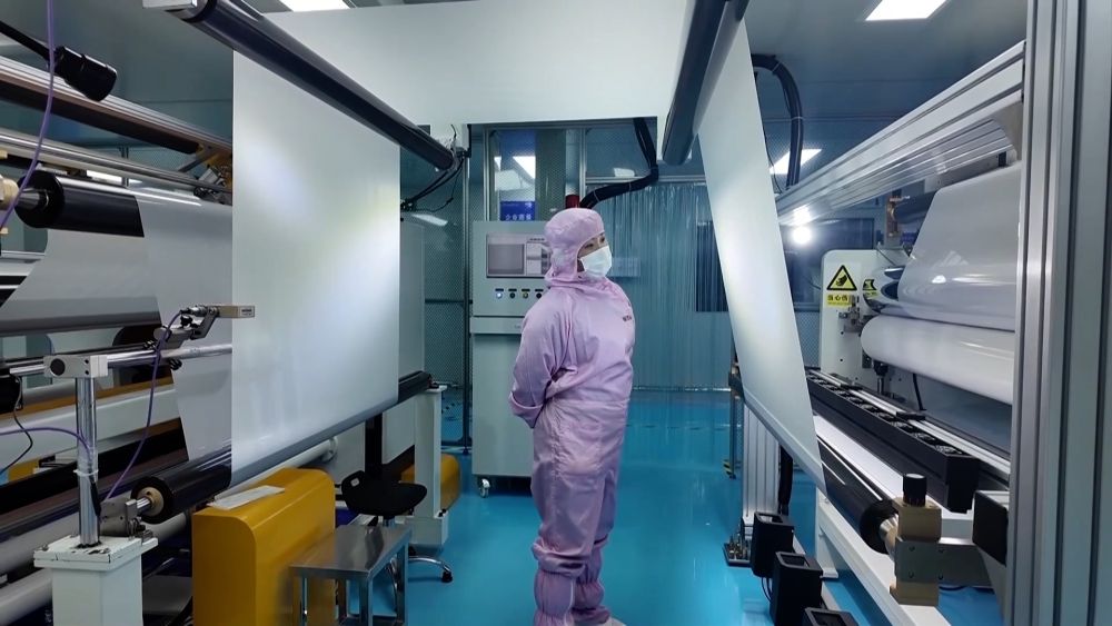 在園區(qū)內(nèi)的湖南壹鑫科技有限公司無塵生產(chǎn)車間,光學(xué)薄膜自動化生產(chǎn)線正滿負(fù)荷運(yùn)轉(zhuǎn)。