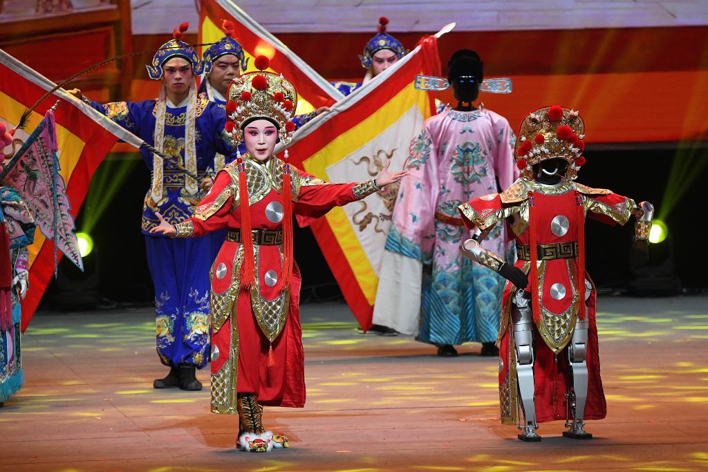 活動(dòng)期間,一場(chǎng)“人機(jī)共舞”的演出線上直播觀看突破10萬(wàn)人次。機(jī)器人“旺來(lái)”藝術(shù)團(tuán)融合廈金宋江陣、布袋木偶戲等非遺,與真人武者過(guò)招、變化陣型。