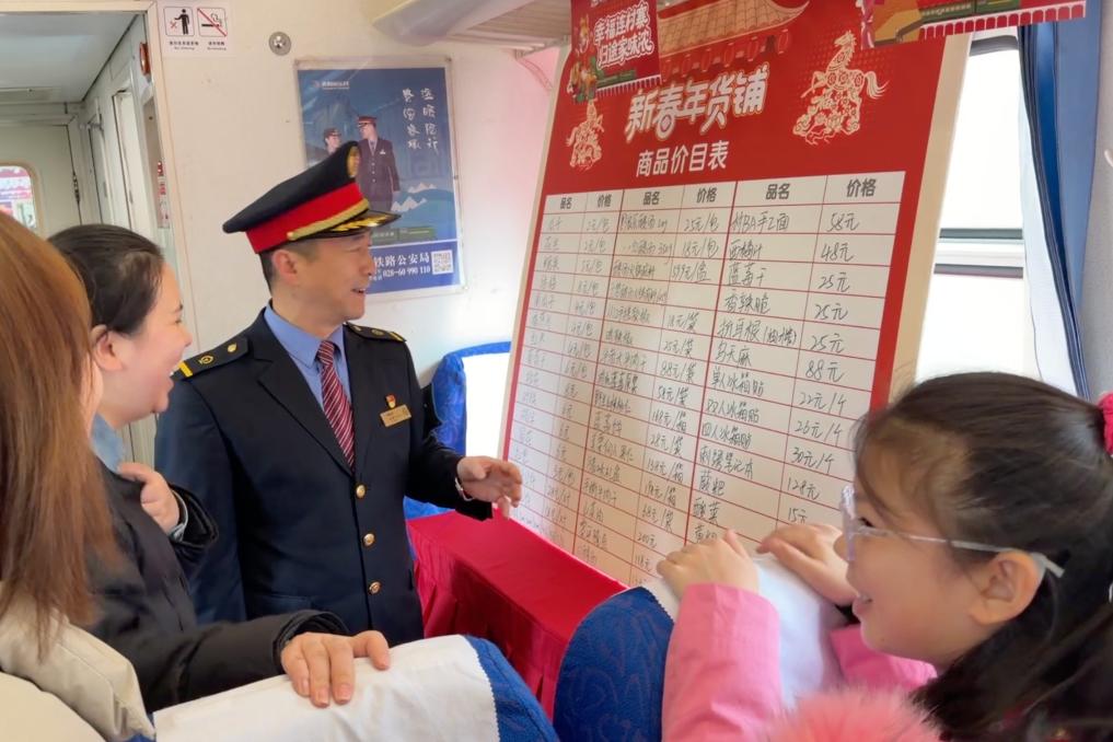 被網(wǎng)友稱為“帶貨車長”的胡貴川穿梭在車廂中,從最初的幫老鄉(xiāng)吆喝賣菜,到建立“綠皮火車超市”微信群,他與班組將服務做到了鄉(xiāng)親們的心坎里。今年春運,非遺展示、郵政主題、村火車大舞臺等車廂同步開放,讓這列慢火車成為展示鄉(xiāng)村振興成果的窗口。