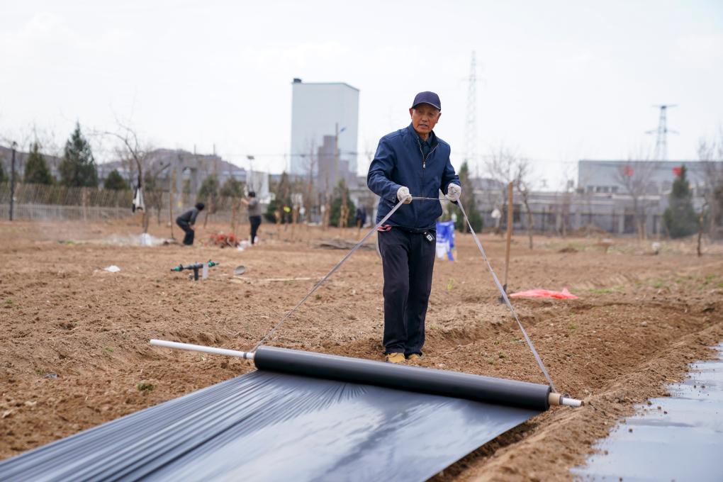地膜鋪好了,高東元跪在菜畦邊,小心翼翼地用土把邊緣壓實(shí)??粗矍暗牟说?,高東元笑著說(shuō):“清明過(guò)后,菜椒、茄子就都可以種了?!彼难凵窭?,盛滿(mǎn)了對(duì)歲稔年豐的期盼。