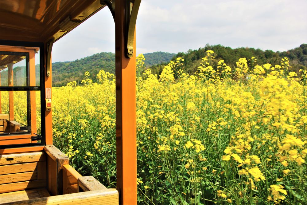 坐在車廂里向外望去,漫山遍野的油菜花隨風(fēng)起伏,如金色的海洋,粉墻黛瓦的古村散落其間,春耕的農(nóng)人在田間勞作,構(gòu)成一幅鮮活的田園圖景。游客們紛紛舉起相機(jī),定格下這人與自然和諧共生的春日美景,偶爾有花瓣落在車窗上,更添幾分詩(shī)意。