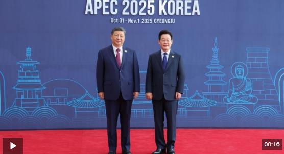 習(xí)近平主席抵達(dá)時(shí),韓國(guó)總統(tǒng)李在明熱情迎接。兩國(guó)元首握手、合影,留下珍貴的“APEC瞬間”。隨后,兩位領(lǐng)導(dǎo)人微笑交談,共同步入會(huì)場(chǎng)。