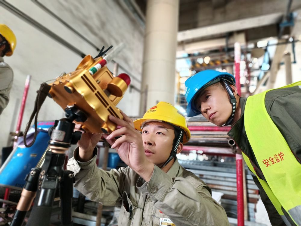 2024年4月23日,中國(guó)核電工程有限公司的企業(yè)導(dǎo)師和項(xiàng)目負(fù)責(zé)人現(xiàn)場(chǎng)指導(dǎo)朱澳(左一)。(李海萁 攝)
