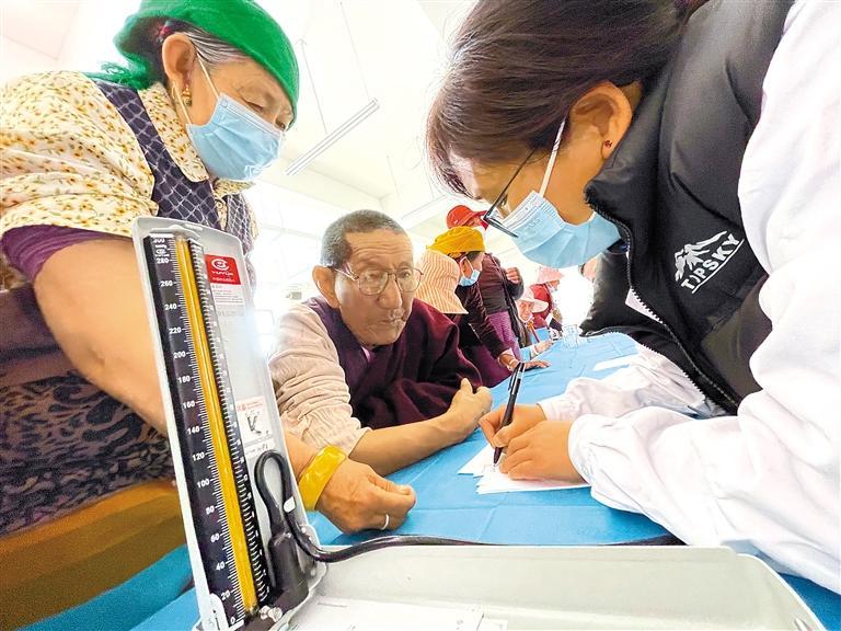 圖為義診活動中,醫(yī)護(hù)人員為群眾測量血壓。記者 次旺 攝