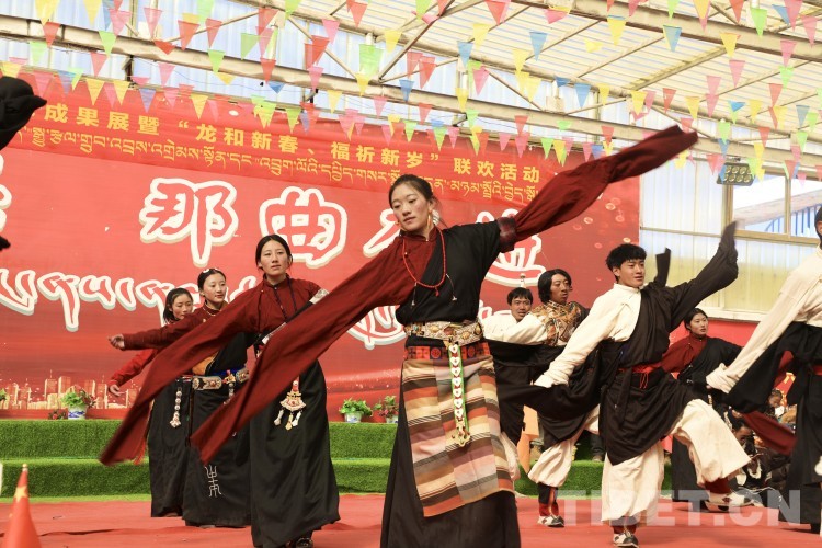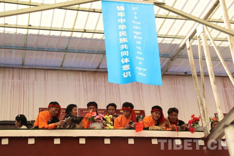 中國西藏網(wǎng)訊 2月10日,中國西藏信息中心“新春走基層”青藏線采訪組一行,來到西藏自治區(qū)那曲市安多縣灘堆鄉(xiāng),適逢當(dāng)?shù)卦谂e辦灘堆鄉(xiāng)第二屆“鄉(xiāng)村振興 那曲奮進(jìn)”藝術(shù)成果展暨“龍和新春、福祈新歲”聯(lián)歡活動。采訪組一行來到鄉(xiāng)政府對面的灘堆鄉(xiāng)文化站,記者在現(xiàn)場看到許多穿著具有當(dāng)?shù)孛褡逄厣椀娜嗽诖司奂T诤闷嫘牡尿?qū)使下,經(jīng)詢問當(dāng)?shù)馗刹坎胖?,為喜?024春節(jié)和藏歷新年,感激黨和國家的關(guān)心關(guān)懷,歌頌如今來之不易的幸福生活,鄉(xiāng)村文藝隊(duì)特此精心準(zhǔn)備了文藝節(jié)目,以嶄新的面貌和昂揚(yáng)的精神展現(xiàn)新時(shí)代牧民群眾的精神風(fēng)貌和幸福生活。