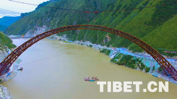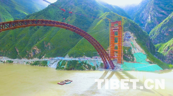 藏木特大橋位于西藏加查縣安饒鎮(zhèn)桑加峽谷內,地處海拔3350米的山地,主橋橫跨雅魯藏布大峽谷,水深66米,大橋采用430米中承式鋼管混凝土拱,拱高112米,是首座跨過雅魯藏布江的鐵路橋梁。
