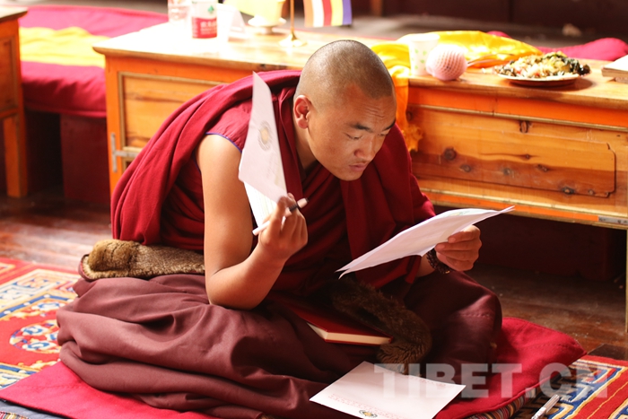 圖為噶瑪唐克正在學(xué)習(xí)藏傳佛教知識。圖片由受訪者提供