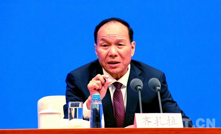 圖為中共西藏自治區(qū)委員會副書記、西藏自治區(qū)人民政府主席齊扎拉在發(fā)布會上答記者問 攝影:劉莉