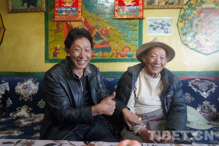 羅加書記和父親長得很像,尤其是那雙有神的眼睛里,都帶著一絲堅韌。坐在一旁的82歲老人貢桑白旦沉默少言,但當(dāng)他講起自己當(dāng)年的一段段故事,你會覺得這眼神中盡是歲月的沉淀。