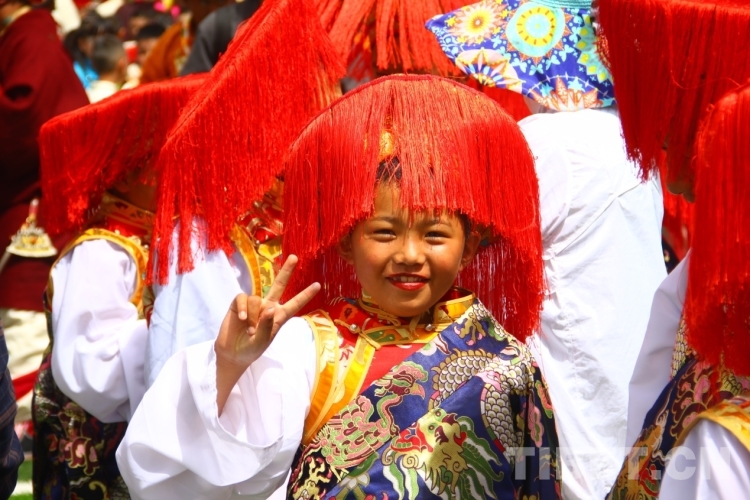 圖為開幕式上穿著節(jié)日盛裝的演員 攝影:德吉卓瑪