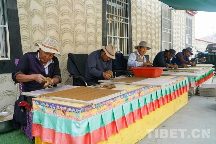 在318國(guó)道吞巴鎮(zhèn)沿線(xiàn),一排排晾曬整齊的藏香,一位位正在制香的手工藝人,一家家規(guī)模不小的藏香公司,成為往來(lái)車(chē)輛駐足最久的地方。