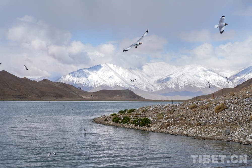 圖為6月,班公湖上棕頭鷗群集 攝影:邊子捷