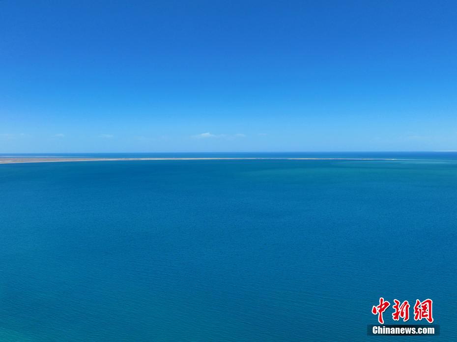 暮春時(shí)節(jié),素有“高原藍(lán)寶石”之稱的青海湖天高云淡、波光粼粼。遠(yuǎn)處的山與碧藍(lán)的湖水交相輝映,宛如油畫,美不勝收。圖為航拍青海湖水天一色。