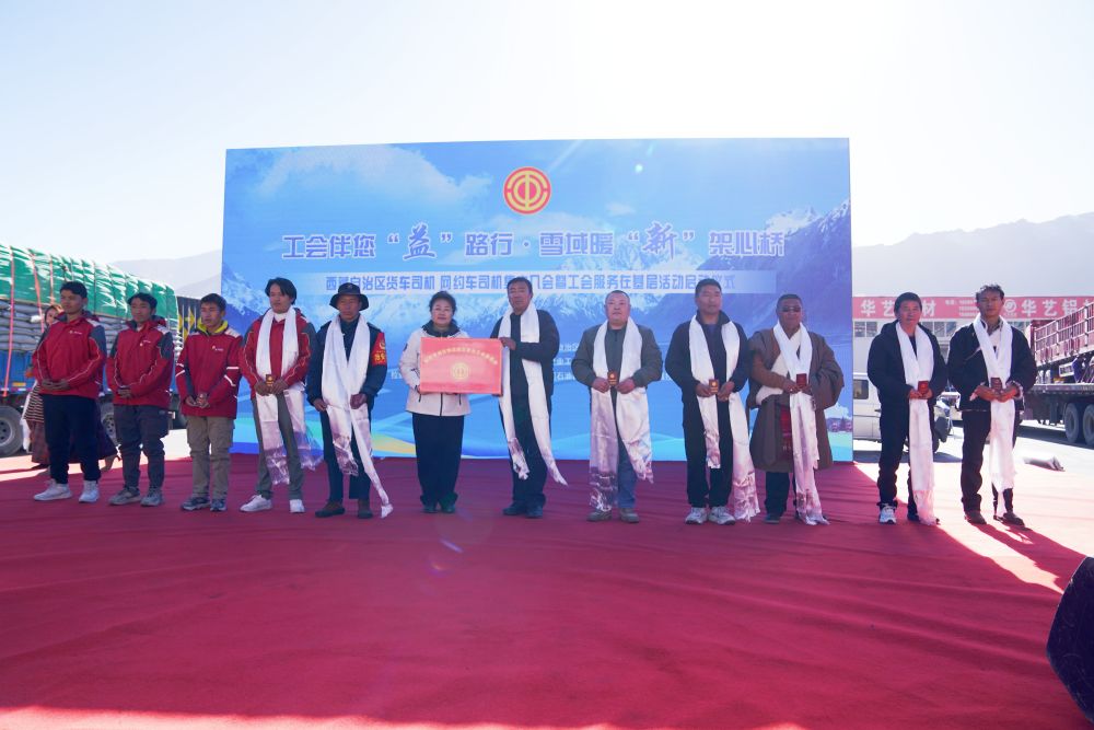 12月5日,西藏自治區(qū)貨車司機、網(wǎng)約車司機集中入會暨工會服務(wù)在基層活動啟動儀式在拉薩城投物流園舉行。新華社發(fā)