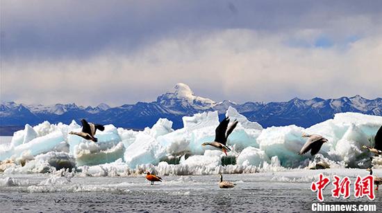 資料圖:西藏阿里地區(qū)革吉縣鹽湖鄉(xiāng)卡慶措鹽湖。中新社記者 趙延 攝
