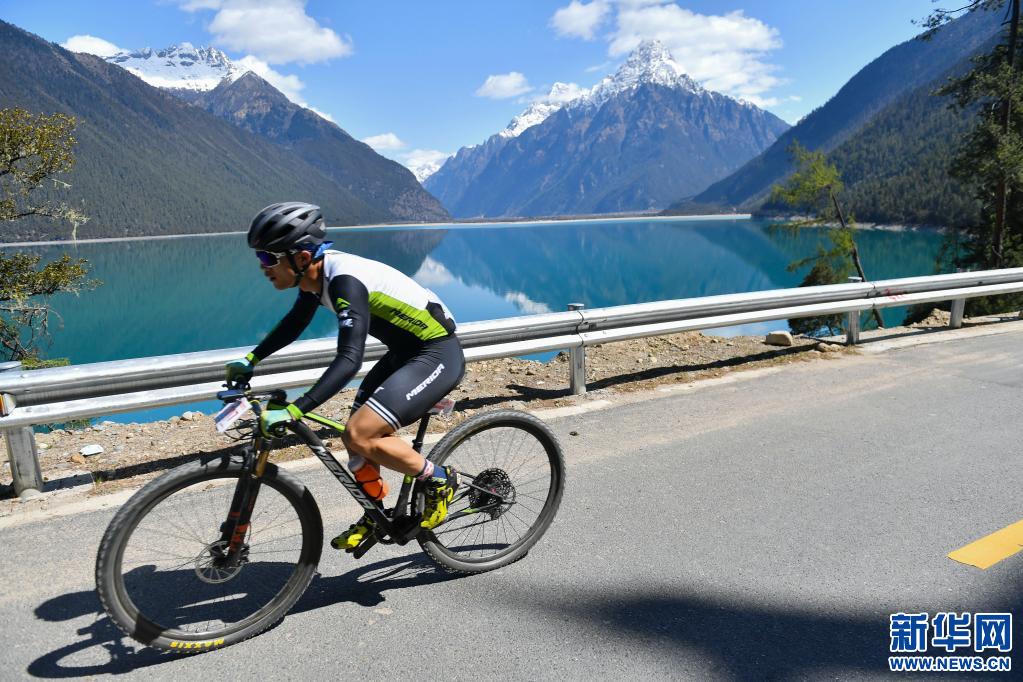 第8屆環(huán)巴松措國際山地自行車越野競速賽1日在位于西藏自治區(qū)林芝市的國家5A級景區(qū)巴松措國家森林公園內(nèi)鳴槍開賽。賽道平均海拔超3600米,是目前國內(nèi)海拔最高的環(huán)湖自行車賽。