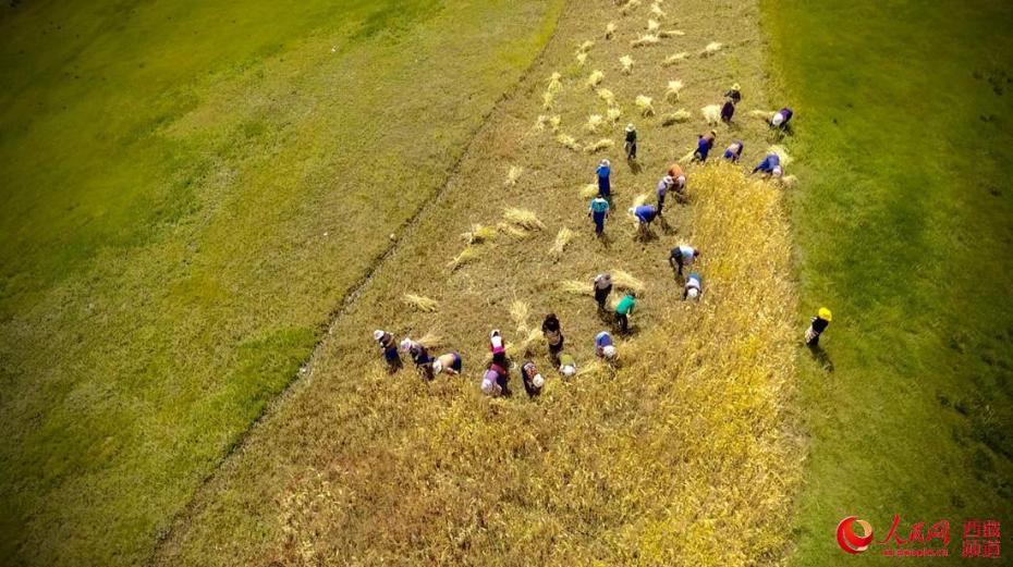 互幫互助忙收割。人民網(wǎng) 次仁羅布攝