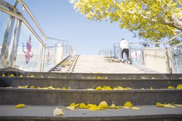 陽(yáng)光溫暖地包裹著大地,穿過草木,穿過人群,在地上折射出好看的光影。樹木一排排整齊站立著,樹葉時(shí)不時(shí)隨風(fēng)飄落,落在地面,鋪?zhàn)饕坏亟鹕牡靥?,行人走過,發(fā)出“沙沙”的聲響,伴著人們的說笑聲,格外動(dòng)聽美妙。