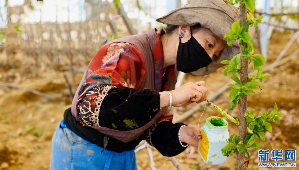 一棟溫暖的溫室大棚內(nèi),工人們正跟著自己的師傅德吉學(xué)習(xí)如何給車?yán)遄訕?shù)松土施肥、新梢摘心、控溫澆水、人工授粉,以確保今年順利掛果。近日,位于西藏拉薩市尼木縣吞彌現(xiàn)代農(nóng)業(yè)產(chǎn)業(yè)園區(qū)的車?yán)遄哟笈锢锍尸F(xiàn)出一片繁忙景象。