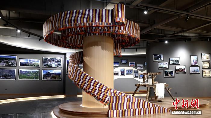 作為扎囊縣“氆氌之鄉(xiāng)”的靈魂技藝,這里陳列著傳統(tǒng)織布機、多彩氆氌的實物,旋轉(zhuǎn)式柱子上展示的氆氌成品更是令人驚嘆:既延續(xù)著千年羊毛紡織的溫暖質(zhì)感,又透著當代匠人對傳統(tǒng)技藝的新鮮詮釋,展示扎囊人民代代相傳的智慧與對生活的熱愛。