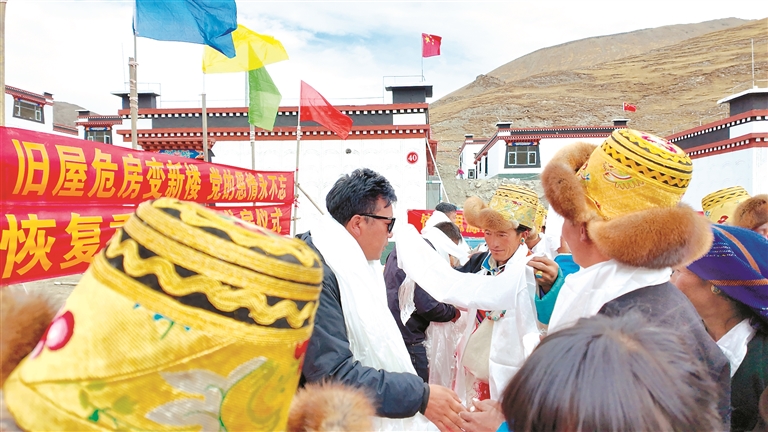 “哈達獻給最親的人,謝謝你們!真沒想到,這輩子能住上這么好的房子。這是黨的恩情,也是你們的功勞!”2025年10月底,日喀則市薩迦縣拉洛鄉(xiāng)塔村的災(zāi)后重建房屋全部竣工,村民歡天喜地搬進新居。入住當天,曾經(jīng)反對搬遷的次旦手捧哈達獻給包村干部和施工隊隊員,并充滿感激地說。