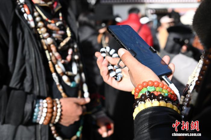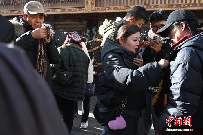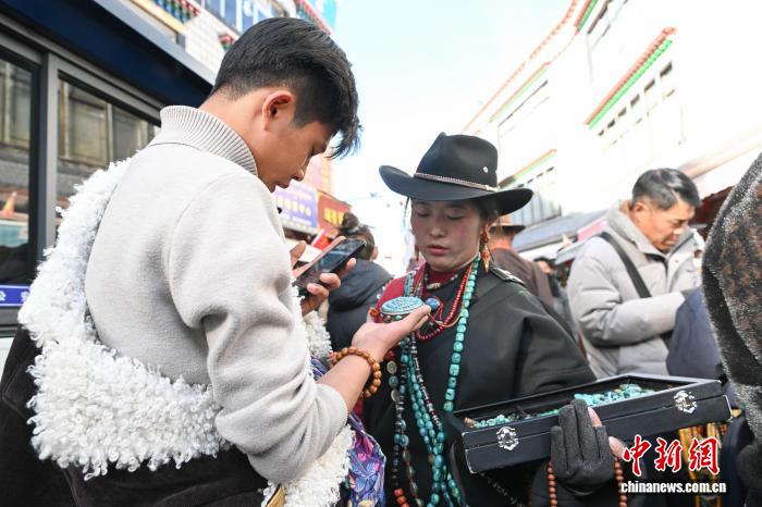 1月9日,西藏拉薩市沖賽康露天集市,在陽光下熱鬧非凡。被民眾譽(yù)為“雪域高原義烏”的沖賽康露天集市,地處八廓古城核心區(qū)域,是拉薩最具歷史的古玩與小商品交易地。藏式古玩、特色手工藝品琳瑯滿目,這里延續(xù)著“袖筒交易”等傳統(tǒng)。近年來,商人搶抓電商機(jī)遇開啟直播帶貨,線上線下聯(lián)動,讓百年市集在傳統(tǒng)韻味與現(xiàn)代商貿(mào)的碰撞中煥發(fā)新生,盡顯雪域商貿(mào)獨(dú)特魅力。圖為商人在沖賽康露天集市直播帶貨。中新社記者 貢嘎來松 攝