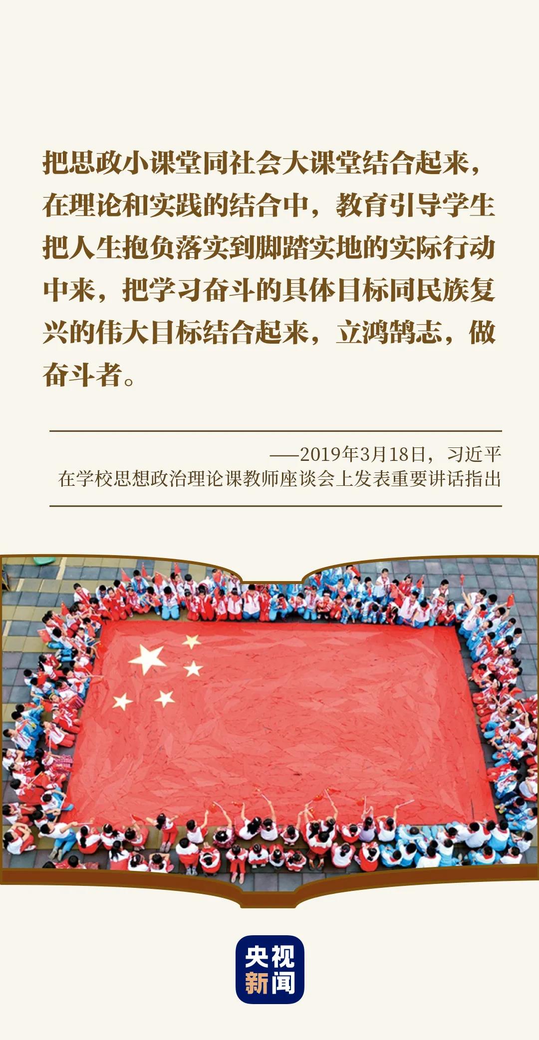 “把思政小課堂同社會(huì)大課堂結(jié)合起來(lái)”,2019年3月18日,習(xí)近平總書(shū)記在學(xué)校思想政治理論課教師座談會(huì)上指出。