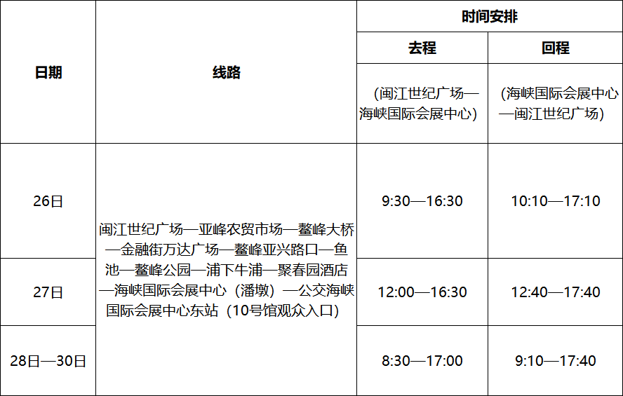 ?。?)可乘坐白湖亭——海峽國際會展中心區(qū)間專線,從白湖亭站出發(fā)直達(dá)海峽國際會展中心(1號館)。