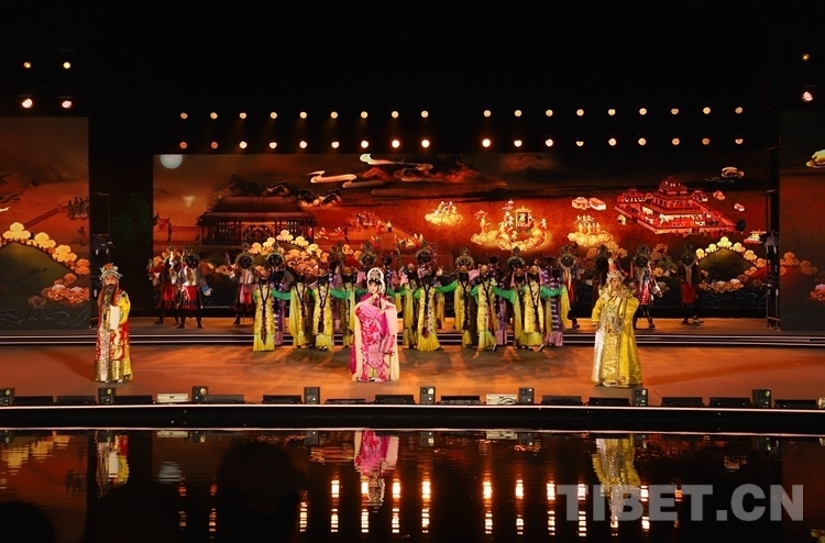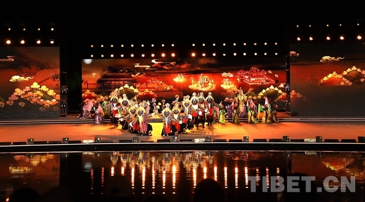 當(dāng)晚開(kāi)幕式文藝演出共分為序《雪頓新韻》、上篇《相約雪頓》、下篇《心約拉薩》和尾聲《百年雪頓》四部分,整場(chǎng)文藝演出融合歌曲、舞蹈、藏戲、京劇、昆曲、街舞等元素,并以半實(shí)景的舞臺(tái)藝術(shù)形式上演《百年雪頓》等節(jié)目,線(xiàn)上線(xiàn)下呈現(xiàn)了一臺(tái)傳統(tǒng)與現(xiàn)代交相輝映、傳承與創(chuàng)新和諧相融、歷史與未來(lái)一脈相承的文藝盛宴。